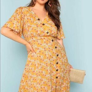 Shein Asymmetric Buttoned Placket Floral Dress-Plus Size