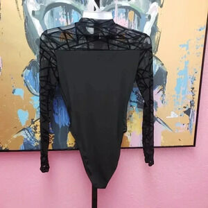 Black bodysuit, snap bottom, abstract mesh top. Size XS Great Condition