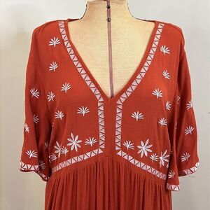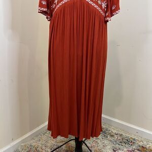 Shein Burnt Orange Embroidered Boho Dress - Size 1XL