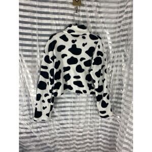 Shein Cowprint Quarter Zip Faux Fur Pullover Sweater