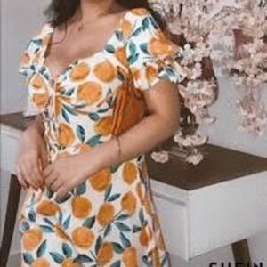 Shein Curve Puff Sleeve Tie Front ‘Just Peachy’ Dress Sz 4XL Flowy