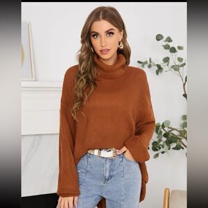 Shein Funnel Neck Drop Shoulder Ribbed Knit Sweater