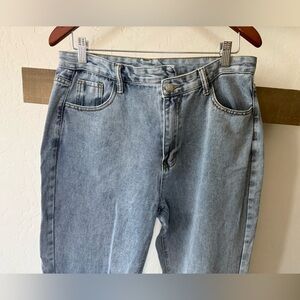 Shein|Light Blue Denim Jeans in straight leg with side slit•••High rise Large