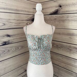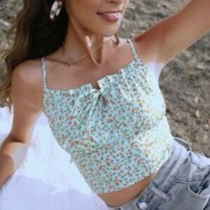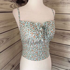 Shein Size small Light blue ditsy floral patterned tie front crop top Like new