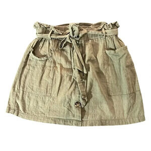 Shein Olive Green Button Front Paper Bag Skirt Large