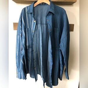 Shein|Oversized button down chambray top, striped & solid—asymmetrical hem•••XXL