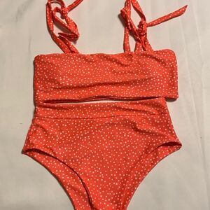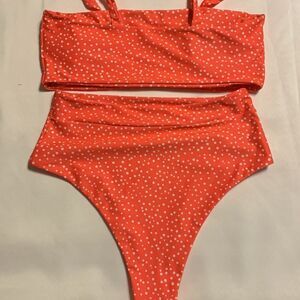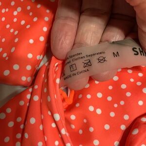 Shein Size Medium two-piece orange/white polkadot bikini with padded top. See photos for complete description/details. Like new condition & smoke free/pet free home.