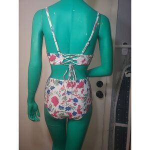 Shein White With Blue And Pink Floral Bikini 2 Piece Swimsuit Size S.