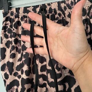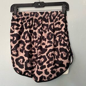 Shein black brown and black animal print running athletic shorts size medium in great condition. Elasticized waist with pull cords. Inseam is 2”.