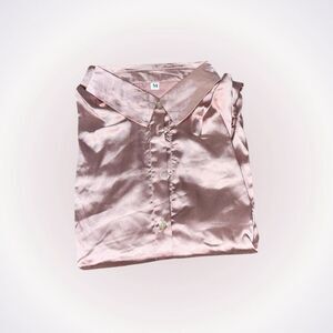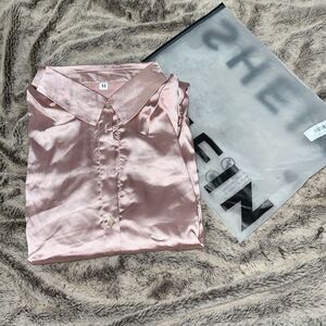 Shein long sleeve collared button up satin feel shirt | Sz M