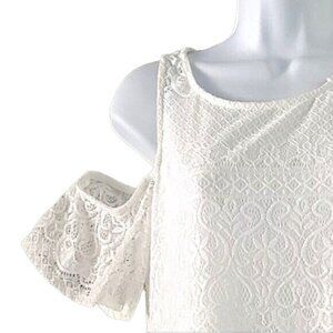 Sheinside Lace Dress Cream Small Short Sleeve Crochet Cold Shoulder Sheath