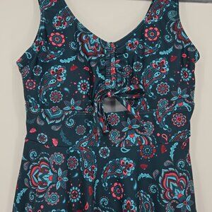 Shekini Floral Sleeveless Dress - Black and Blue One Piece Swimsuit Size Small