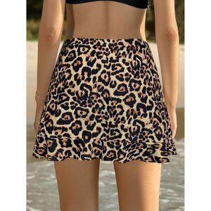 Shekini Size Medium Swim Skirt Womens Leopard Print High-Waisted Ruffle Hem