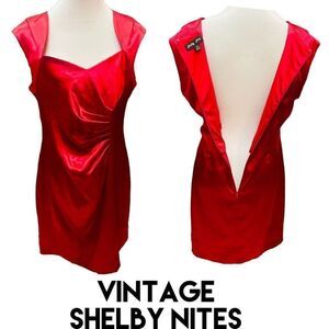 Shelby Nites Vintage Red Sheath Style Sleeveless Satin Midi Dress With Ruched F