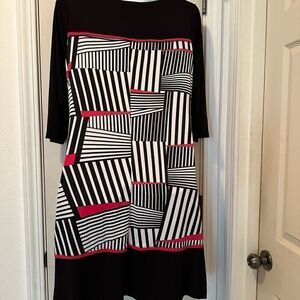 Shelby & Palmer 1X mod black, red, white stripe dress with side gather