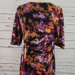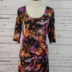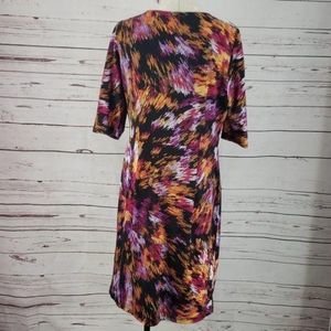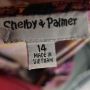 Shelby & Palmer Abstract Print Black Pink Fitted sz 14 Midi Dress