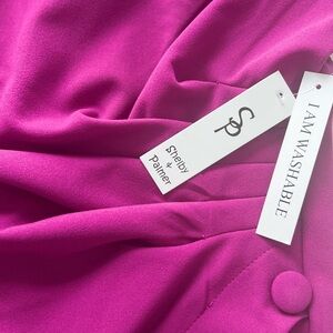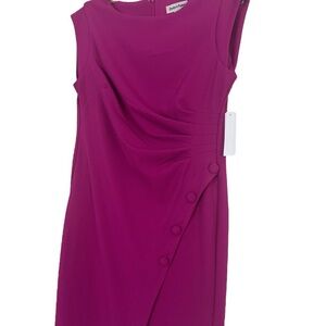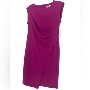 This Shelby & Palmer dress is perfect for cocktail events or work. The sleeveless style and crew neck add a modern touch, while the asymmetrical cut enhances its elegant silhouette.