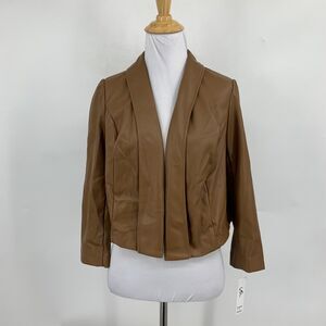 Shelby & Palmer Blazer Women S Small Mocha Faux Leather Shawl Open Front Cropped