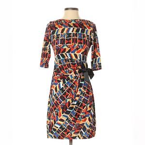 Shelby + Palmer Faux Wrap Boho Ikat Print Sheath Dress 4 Petite