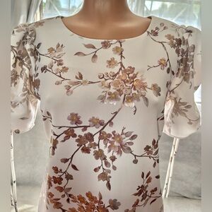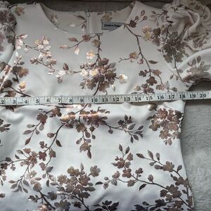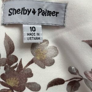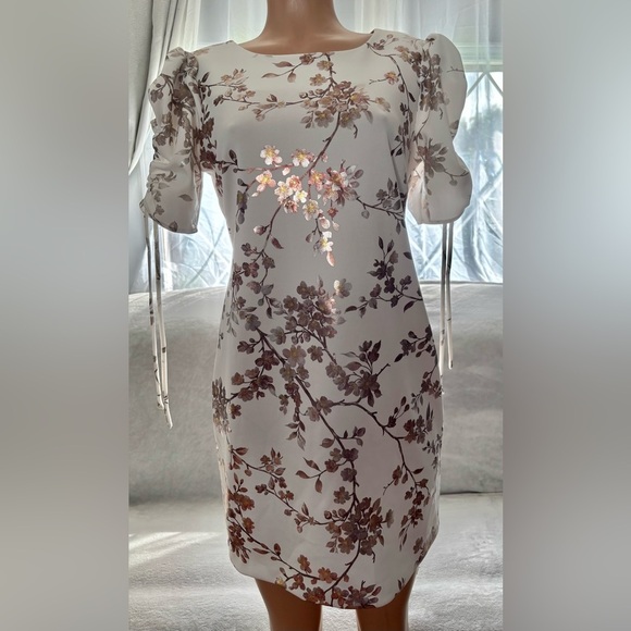 Shelby & Palmer Sheath Dress Women's Size 10 Ruched Sleeve Floral Ivory Stretch