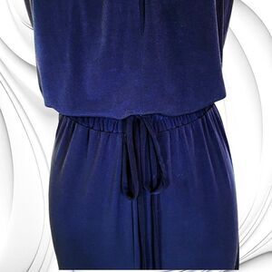 Shelby and Palmer navy blue gold accent Egyptian collar jumpsuit