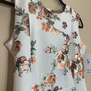 White with metallic floral sheath dress