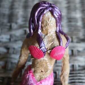 Shelf Sitter handmade clay/Paper Mache pink Mermaid OOAK