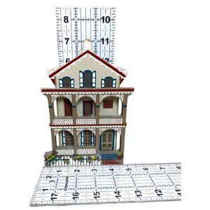 Add Victorian seaside charm to your home with this rare 1993 Shelia’s “Stockton Place Row Houses” shelf sitter from Cape May, New Jersey. 🏖️ Its intricate Gothic Revival details and handcrafted wood construction make it a collector’s dream.