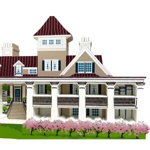 Bring timeless southern charm into your home with this collectible Shelia’s “Magnolia Garden House” wooden shelf sitter, crafted in 1996 🌸🏡. Inspired by one of Charleston, South Carolina’s most historic plantation homes, this beautifully detailed piece showcases elegant Greek Revival columns, sweeping porches, blooming magnolia trees, and classic southern architecture.
