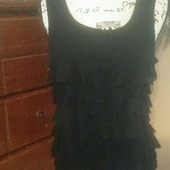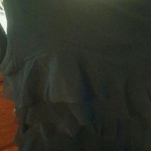 Black with black sheer ruffles. Stretchy