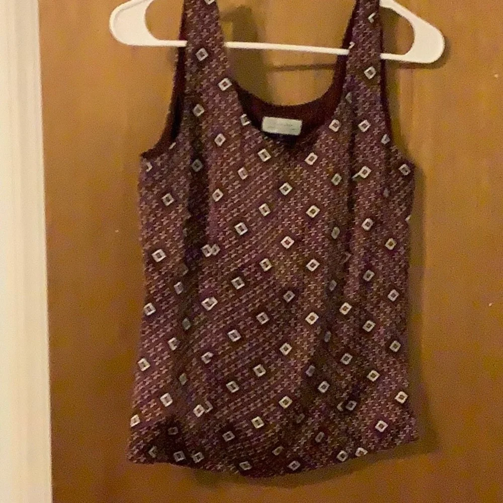Multi color shell brown red green and white with a zipper on the left side