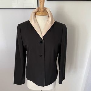 Blush pink shell with black jet chip detailing. Goes with black matching skirt and jacket.