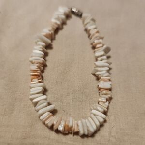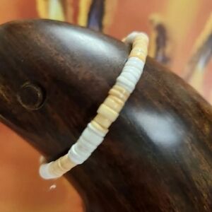 two shell bracelets. one is 7 1/2" long. the other is stretchy