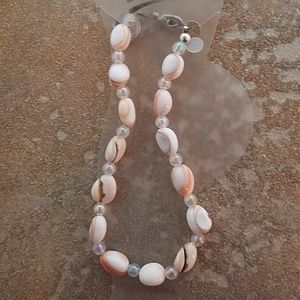 Shell Anklet with Aurora Borealis Beads.