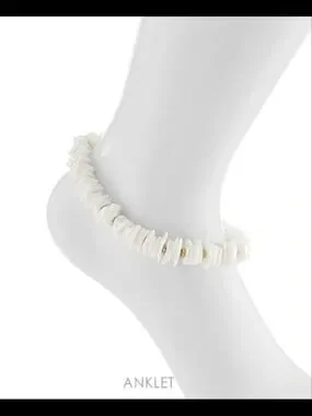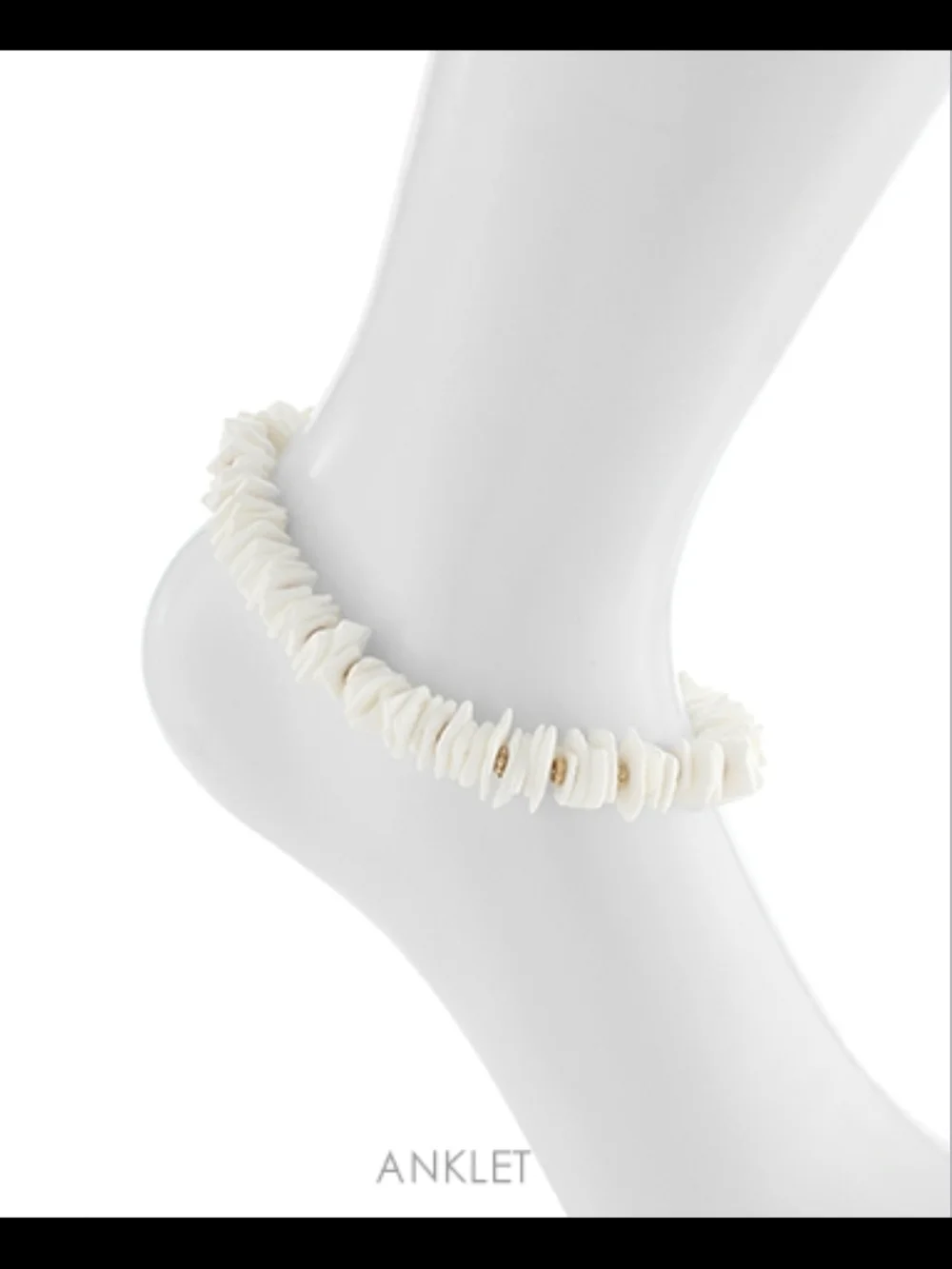Delicate shell chip anklet in white. Beachy and casual. Easy to pair with summer looks. * Gold * Lobster Clasp * 9 1/4" - 2 1/2" L