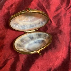 Vintage Real Shell treasure box outlined in brass with closure.Unusual..