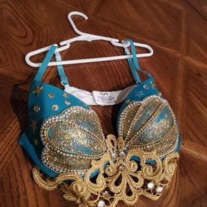 Great foe a Halloween outfit! It does have some minor cosmetic defects. Missing a couple of starts and the string of jewels is slightly coming off but the bra overall is in great condition and its comfy too!