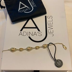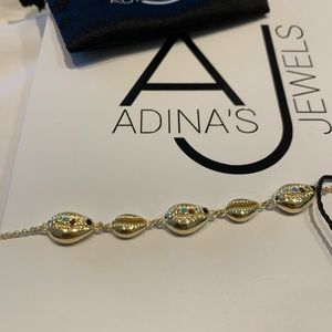 crafted with gold vermeil shell pendants set with multi colored crystals.