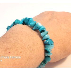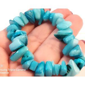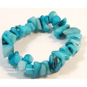 Shell Chips Bracelet 7.5" Elastic Reiki Stretch Beaded Mother of pearl Turquoise