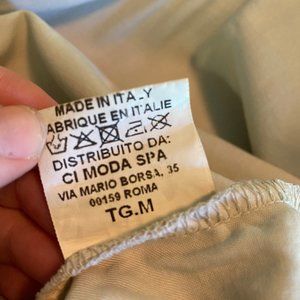 Pictures don't do this item justice. It's a super cute soft material drawstring waist jumpsuit. Bought in Italy about 5 years ago, only worn about 5-6 times. Doesn't fit me anymore, sad to see it go but it belongs in a new home where it can be loved. Roll up the cuffs and wear with flats or put on heals for a fun night out. Easy dressed up or down. Material is super soft and comfortable.