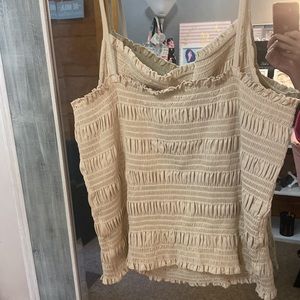Cute beige/tan crop top. Looks great alone or paired with a jacket/blazer.