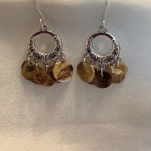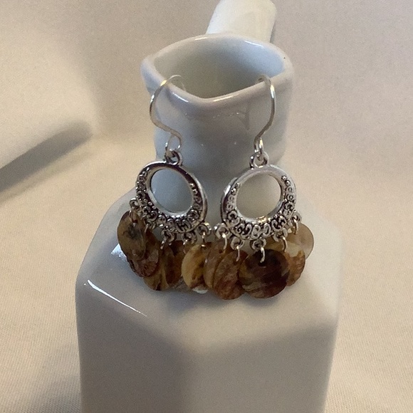 These beauties are made using shell that has been cut into disc. They are about 1” in length and the ear wires are handmade as well.