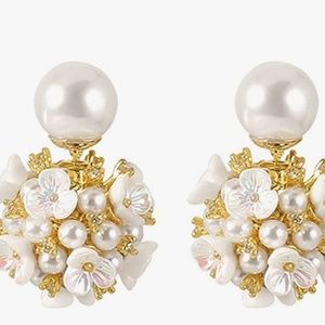 Shell Flower Ball Pearl Double Sided Stud Front Back Earrings for Women Girls 14