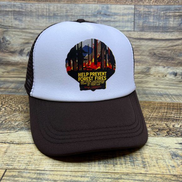 Shell Gas & Oil Mens Trucker Hat Brown Prevent Forest Fires Vintage Ads Ball Cap