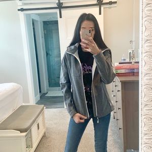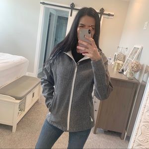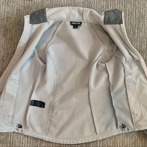 Kirkland brand (Costco) gray shell jacket. Stiff material, pretty warm. Outer shell and inner lining in good condition.