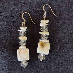 These elegant earrings feature a stunning combination of shell mother of pearl, and smokey quartz, perfect for any occasion. Add a touch of sophistication to your outfit with these beautifully crafted pieces.