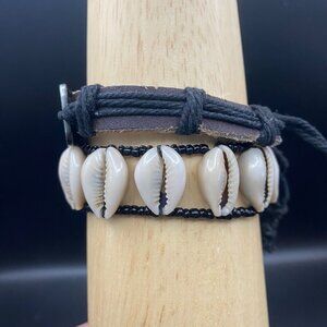 Shell Necklace 2 Bracelet Lot Cowrie Love Leather Two Tone Boho Festival Beach