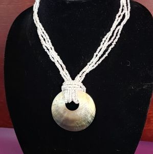 Shell pendant beaded multi-strand necklace.