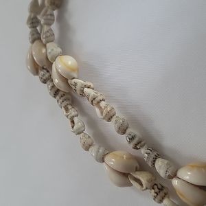 This cream shell necklace I made up with small shell ans a few medium shells as the point of the necklace. great for beachy vibes and summer looks.