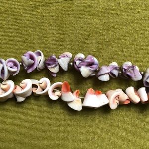 Set of 2 shell necklaces, one pink/ peach and one purple. Perfect layered together or worn separately.